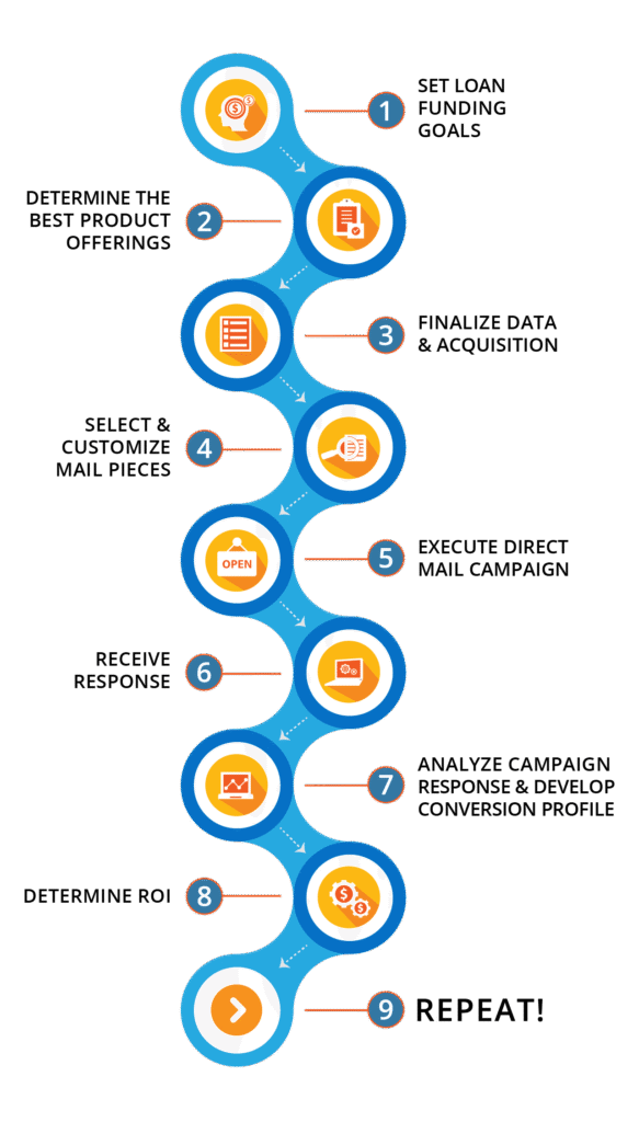 Our team takes the guesswork out of marketing for the mortgage industry, building direct mail campaigns around the best and most effective information available while ensuring maximum success every step of the way.